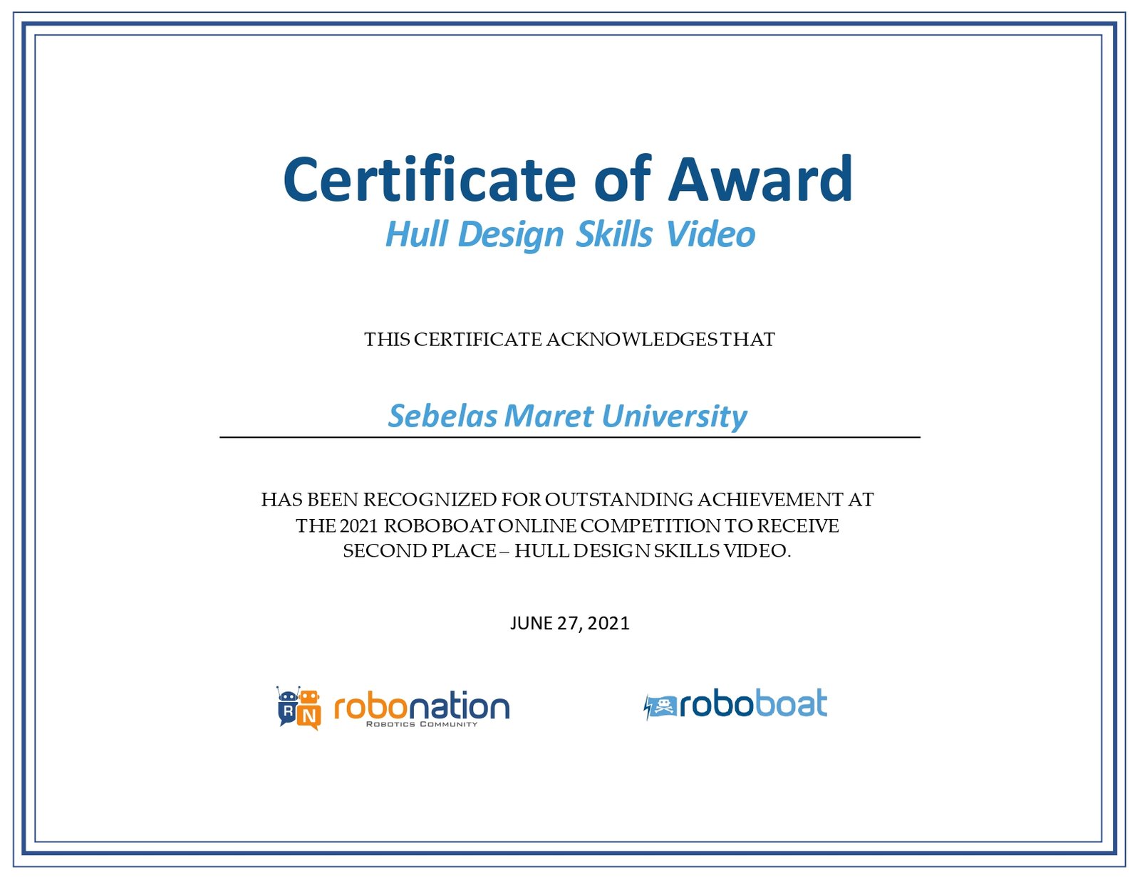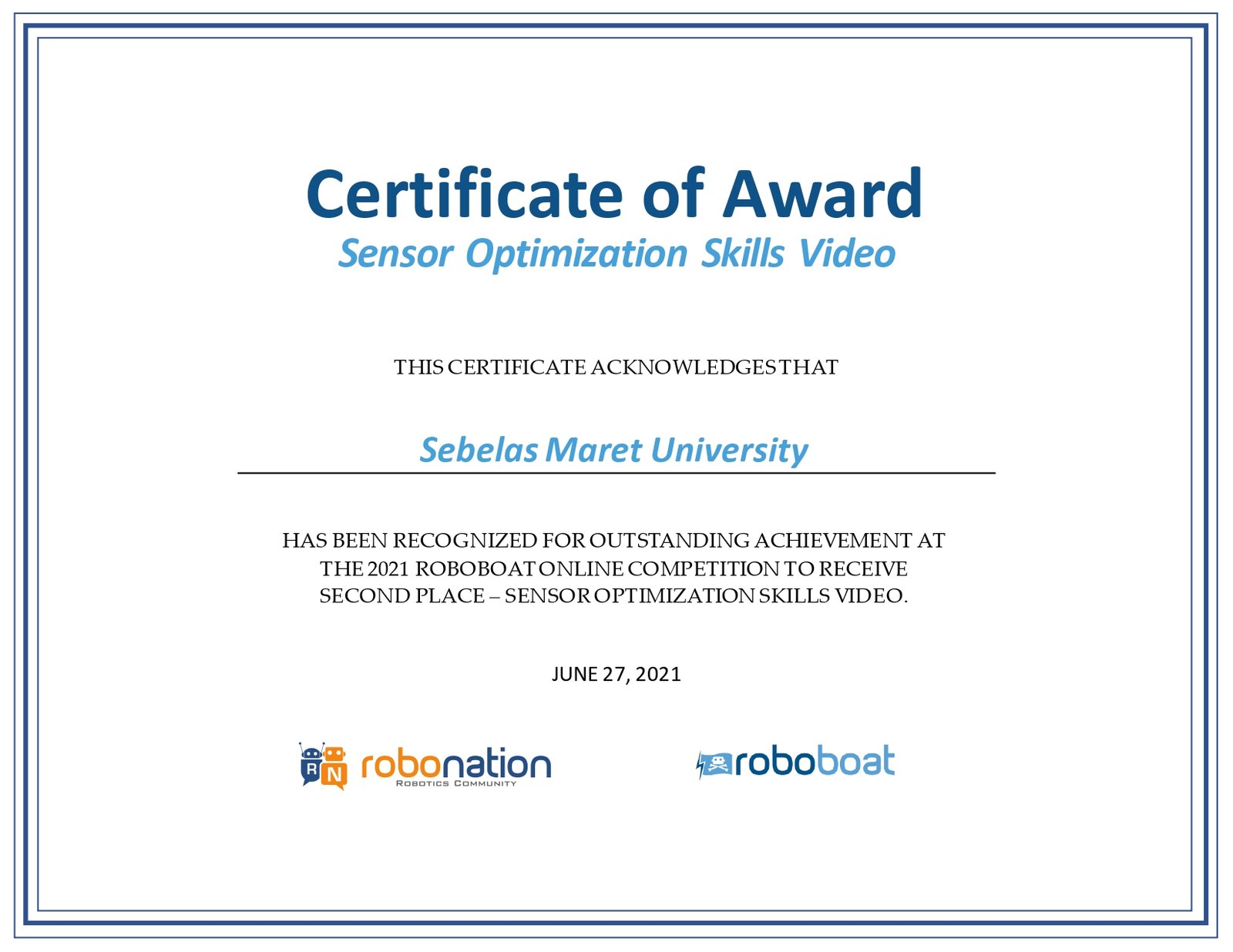 Bengawan UV Roboboat Team is a Subdivision of Bengawan UV Team of Universitas Sebelas Maret. This team was established in December 2016 to aim for advanced science and technology research, especially on an unmanned surface vehicle in Indonesia. For our third year competing in the International Roboboat Competition, we seek developments from our previous work in the 2022 Roboboat.